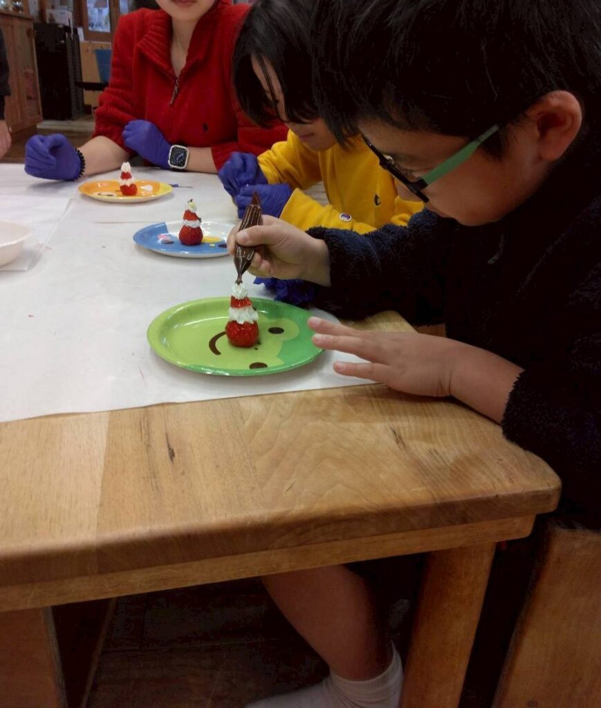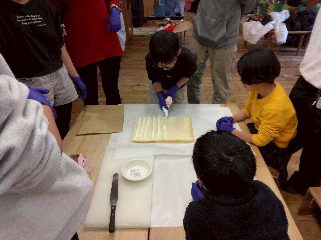 ロールケーキといちごサンタをみんなで作って、お昼ご飯はお弁当とたくさんの 暖かい豚汁をいただきました。そして、抽選でクリスマスプレゼントをもらって大満足!みんな笑顔で 師走の行事を終わりました。参加は小中学生13名、幼児1名、スタッフ・保護者15名の計29名でした。