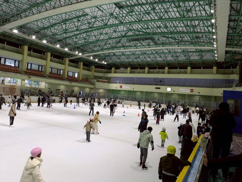 2026年最初の行事は、毎年恒例の「アイススケート体験」から始まりました。9時に風の谷こども園に集合。受付後、年頭の挨拶を交わしてから2台の車に分乗。アイススケート場のある江戸川スポーツランドへ向かいました。10時開場とともにアイススケート場に入ります。